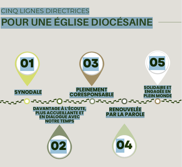Ce document présente les lignes directrices, les orientations pastorales et les moyens privilégiés qui guideront la continuité de la mise en œuvre de la démarche synodale diocésaine. Fruit d’un vaste processus de discernement et de participation, il offre un cadre clair et inspirant pour bâtir ensemble une Église plus proche, plus fraternelle et plus missionnaire.
