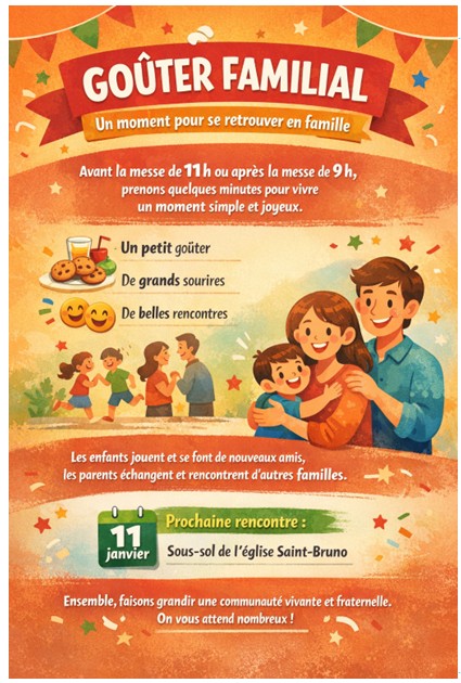 Éveil à la foi des enfants. Goûter familial. Missions sans abri. Partage et socialisation.