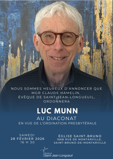 C’est avec joie que nous vous annonçons que Luc Munn, l’un de nos paroissiens, sera ordonné diacre en vue du ministère presbytéral.