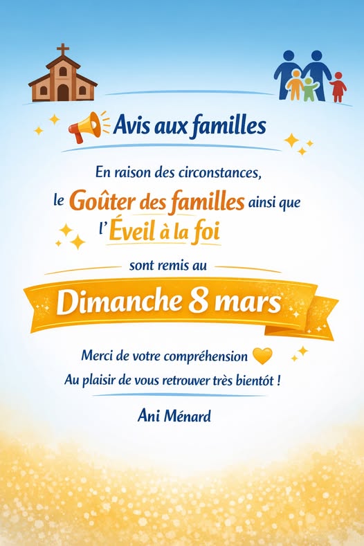 Avis aux familles, il y a changement de date le rendez-vous sera le 8 mars.