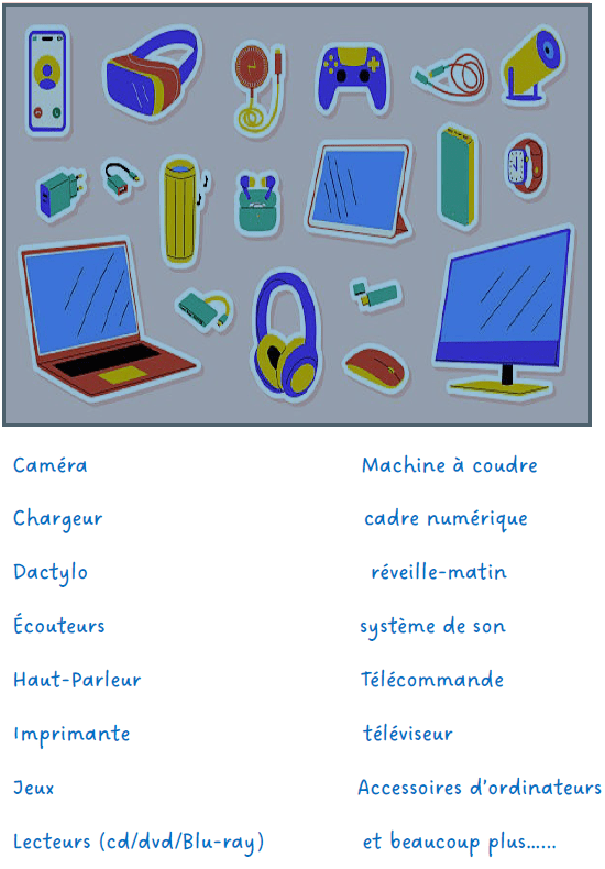 Divers appareils électroniques seront disponibles, venez nous voir.