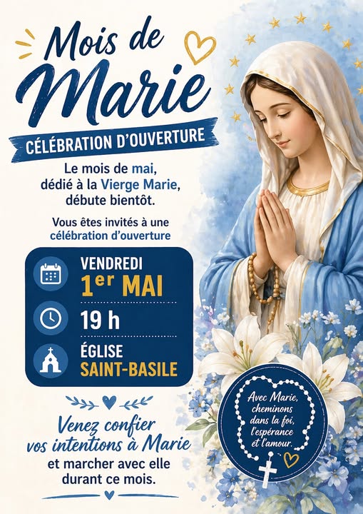 Célébration d’ouverture 1er mai, 19 h 00, Saint-Basile